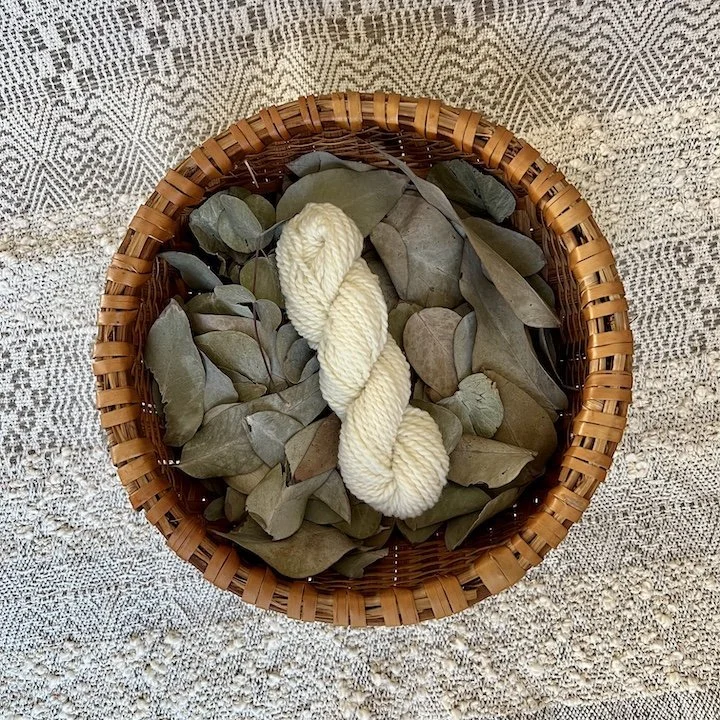 All of the yarns included in these bundles are minimally processed. That means they have not been through carbonization or superwash processes. Evidence of the yarns’ origins in the field or pasture may very occasionally be spotted (e.g., vegetable matter or animal feed!). The skeins have been scoured and then mordanted with a solution of 8% alum sulfate and 6% cream of tartar in preparation for dyeing with natural materials.