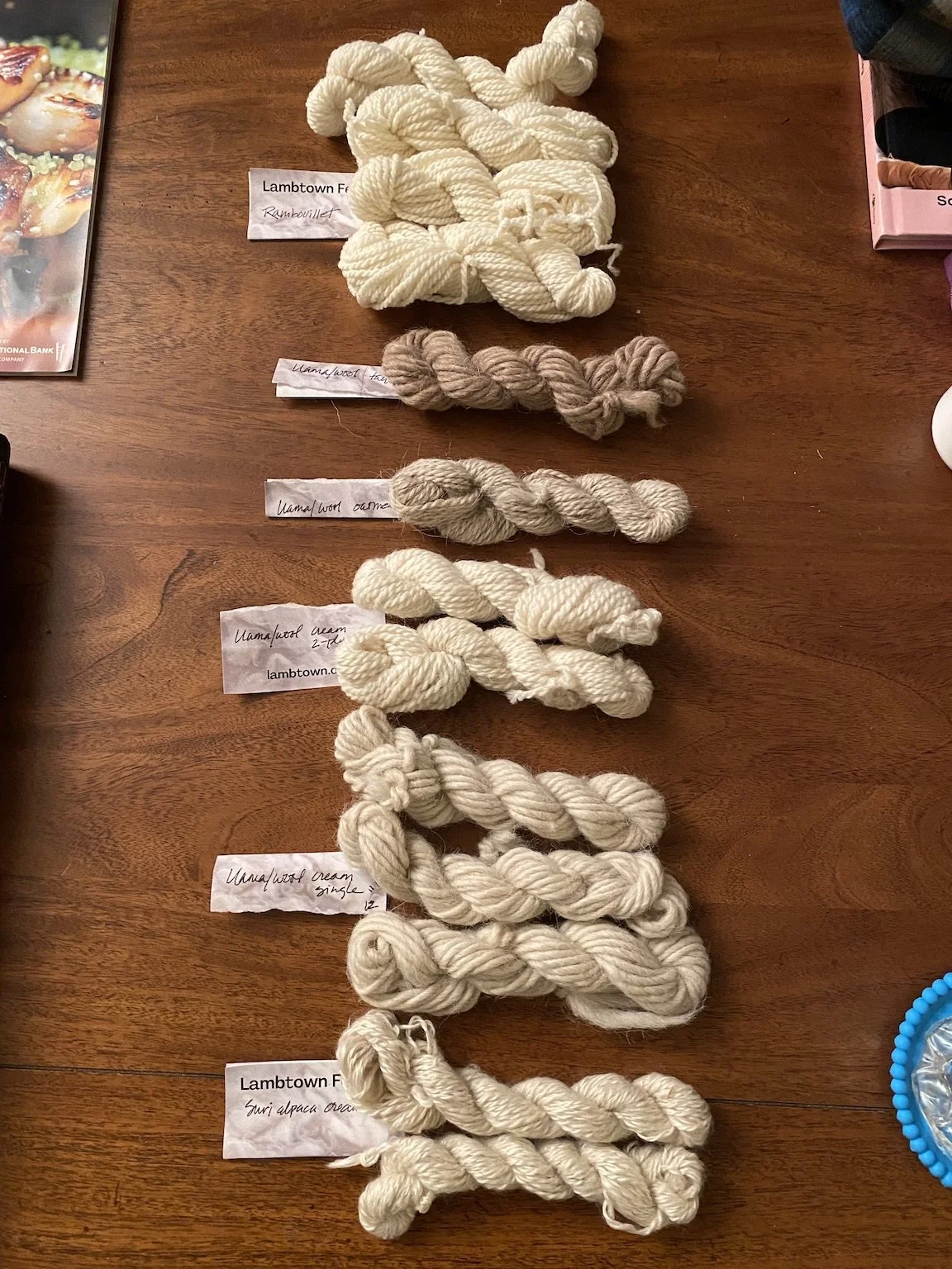 ed note: A heartfelt and massive thank you to Barbara Madley and Kait Hilliard for procuring, scouring, mordanting, and skeining all of these utterly delicious yarns. What a tremendous amount of labor and care they invested! And another impressed thank you to Barbara Madley for writing up these tasting notes. Brava.